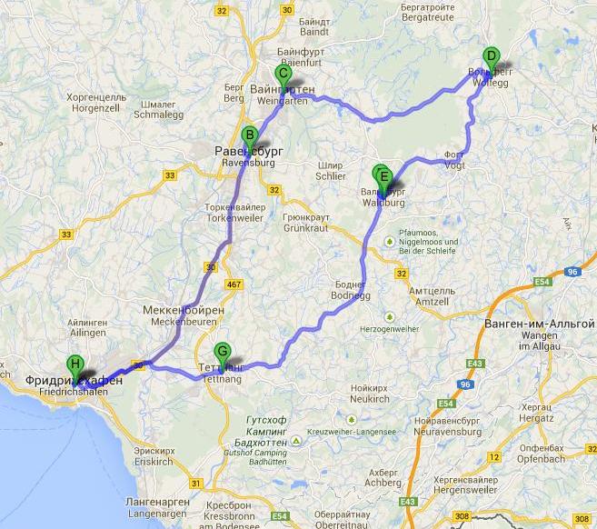 Дневной кольцевой маршрут был составлен накануне вечером. Трудностей с этим не возникло, поскольку начаться он должен был с посещения самого желанного города всей поездки – Равенсбурга (Ravensburg). Почему так? Да потому, что «Равенсбург – это Город Башен и Ворот». Именно так гласит рекламный слоган. Недаром его называют «Швабским Нюрнбергом». Только, в отличие от своего баварского «коллеги», Равенсбург не пострадал в годы войны, поэтому все его башни являются аутентичными.