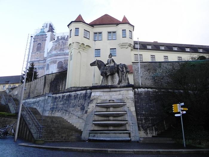 Раздобыв в местном туристическом офисе карту города, мы направились непосредственно в монастырь. Значимость и состоятельность любого аббатства можно оценить по тому, каким оно предстаёт первому заинтересованному взору. В Вайнгартене с этим полный порядок. Холм, на котором воздвигнут комплекс сооружений, окружён мощной стеной: то ли подпорной, то ли защитной – не суть важно. Главное, что на этом фоне ты себя чувствуешь ничтожной букашкой.