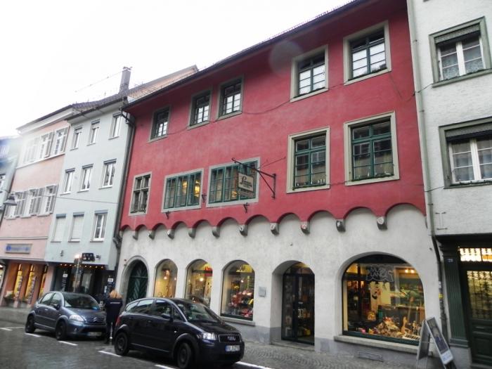 А самый старый дом Равенсбурга датируется 1179 годом — это так называемый Романский дом. Впрочем, глядя на мощную широкоплечую постройку (с зелёными ставнями) в это сложно поверить.