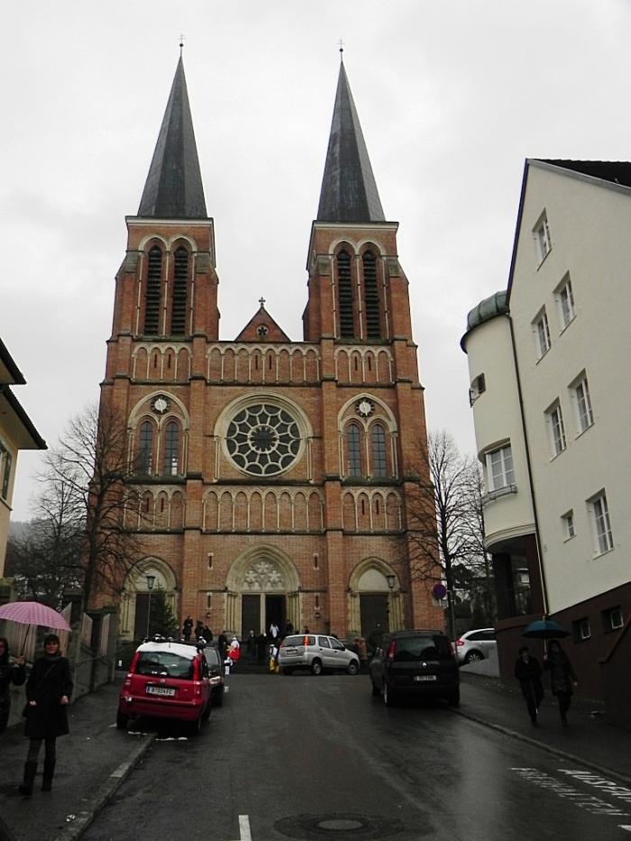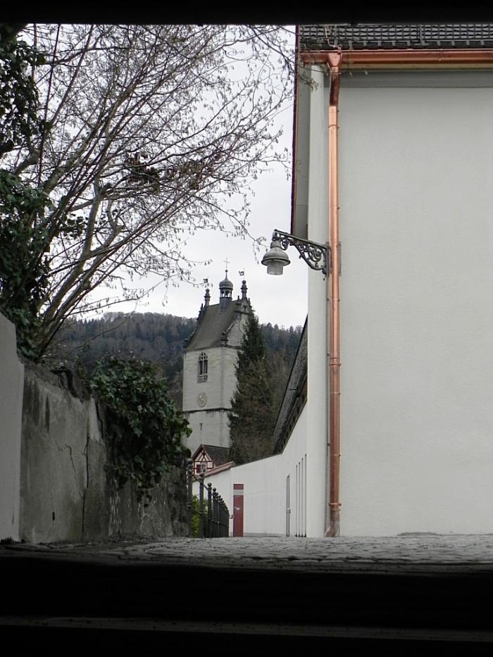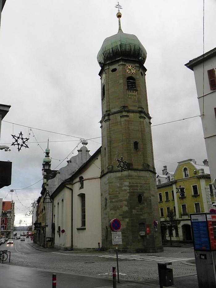 Но вернёмся в Брегенц, точнее, к его храмам, которые были единственным средоточием жизни в это серое зимнее утро. В ходе спуска из Верхнего города в Нижний первым на нашем пути засветилась приходская церковь св. Галла. Нетрудно догадаться, что названа она в честь одного из легендарных ирландских проповедников-миссионеров, несших Слово Божие в европейские земли. В поисках места для уединения, св. Галл некоторое время пребывал в Брегенце. Но по какой-то причине не смог здесь обосноваться и отправился дальше, в Швейцарию. Именно там он и построил молельню, на месте которой был основан знаменитый монастырь св. Галла –