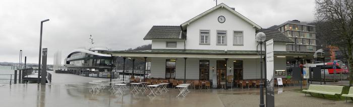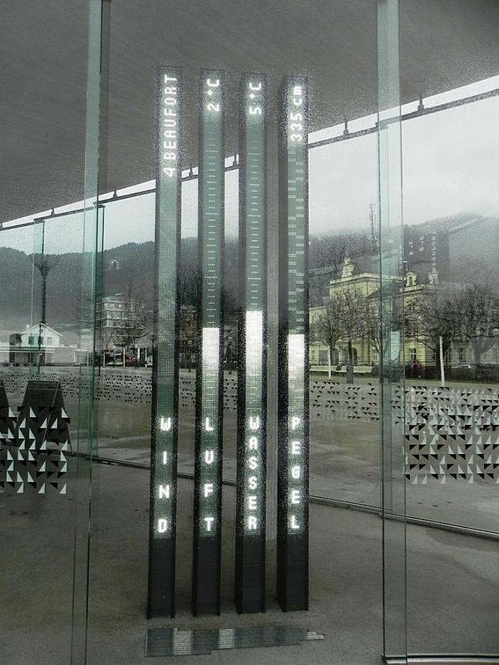 Но одним зданием креатив в Брегенце не ограничивается. Дом искусств – это лишь «эпизод». Здесь же, на набережной, находится железнодорожная станция, которая одновременно является и речным вокзалом. Удобно, практично и оригинально.