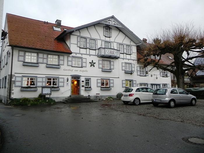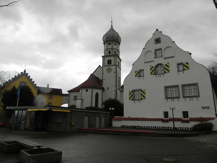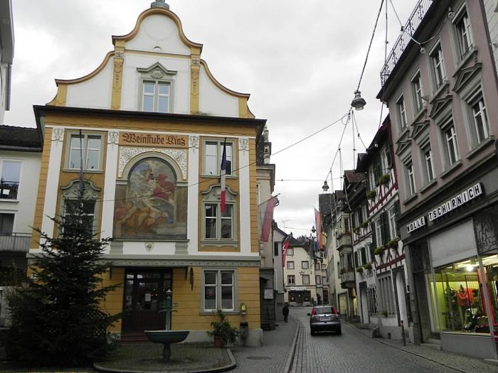 Вопрос повис в воздухе. Внутрь нас не тянуло. Видимо, зря. Всё-таки ценность любой церкви, как правило, заключается не во внешнем виде, а в интерьерах. Именно там можно сделать массу открытий. Впрочем, в данном случае, существовала объективная причина. Ну, кто захочет изучать убранство храмов, если по соседству на площади возвышается одно из самых прекрасных зданий в регионе Боденского озера – Хаус цум Каваццен.