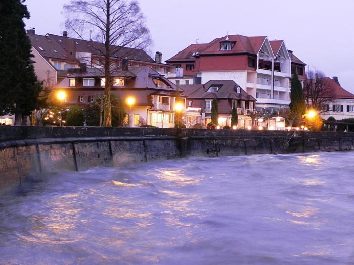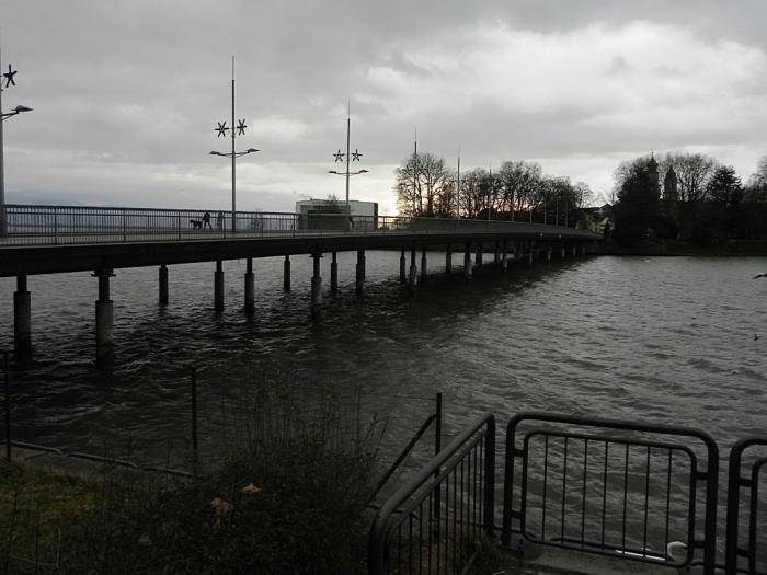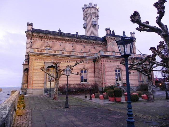 Расположение замка Монтфорт на скалистом мысу придаёт ему особый шарм. Чтобы осознать это, нам не нужно было ждать лета. В тёплом свете ярких уличных фонарей, зажжённых на городской набережной, неспокойные воды Боденского озера были похожи на закипающее молоко.