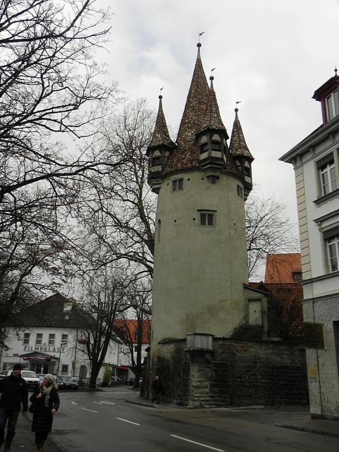 Прежде чем отправиться в прибрежную часть города, нам нужно было слегка отклониться в сторону. От былых укреплений Линдау сохранилось всего три башни, поэтому следовало увидеть их все. Дибстурм, украшенная четырьмя «ласточкиными гнёздами», кажется самой романтичной. Но это впечатление обманчиво, поскольку башня была тюрьмой. Именно поэтому её называли Башней грабителей.
