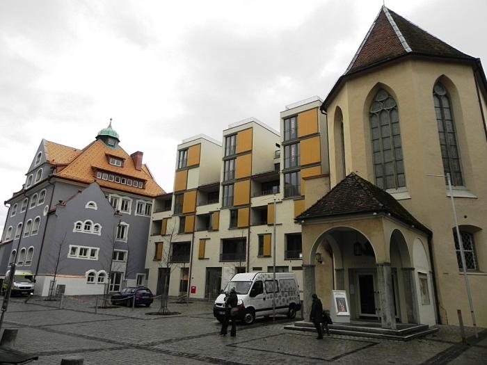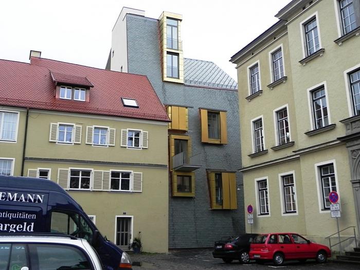 Как это часто бывает, на обратном пути, освободившись от обязательной программы, мы высматривали что-нибудь необычное. В Линдау таковыми объектами оказались современные жилые дома, удачно вписанные в традиционную застройку. В основе большинства из них заложены, как мне показалось, принципы кубизма.