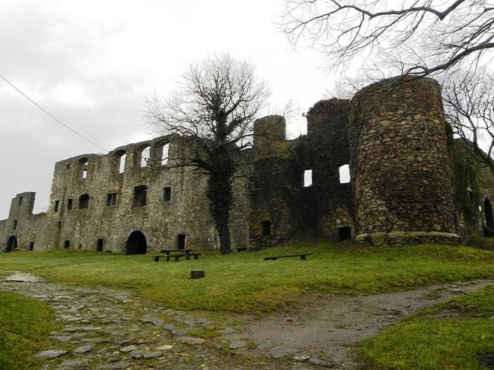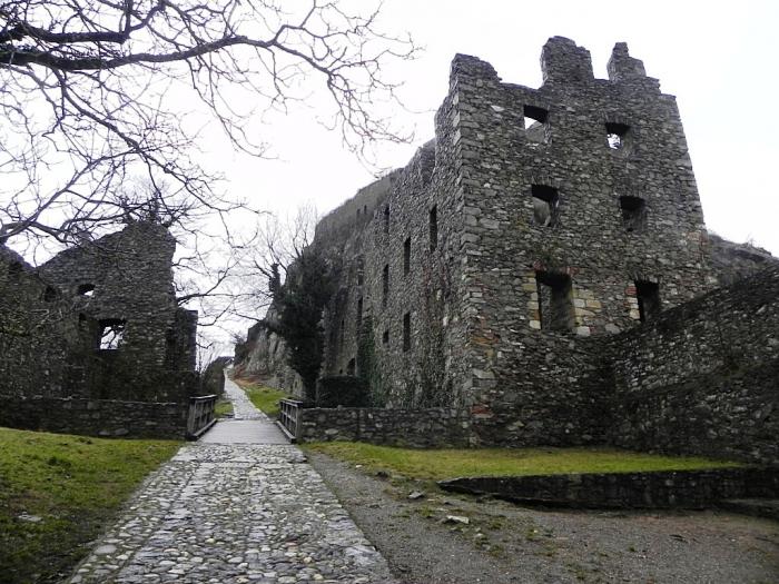 Здесь сохранилось немало крупных фрагментов различных сооружений: остатки замка, арсенала, хозяйственных построек и даже целая башня.