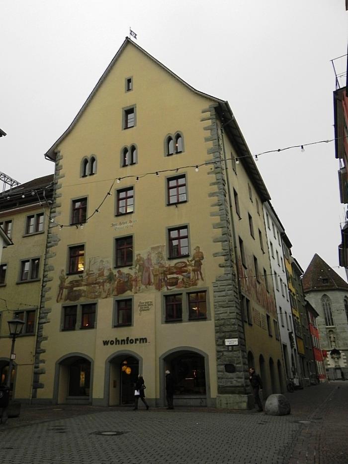 Соседу отеля «Барбаросса» Хауз цум Хохен хафен шесть сотен лет. Но «благодаря» безликим современным окнам ему столько не дашь. Впрочем, это не главное, поскольку взгляд в состоянии воспринимать дом исключительно в виде грандиозного живописного полотна, красочно и детально освещающего ключевые события церковного собора. Фрески выполнены в 1900 году, но создаётся ощущение, что их автор являлся живым свидетелем тех событий.