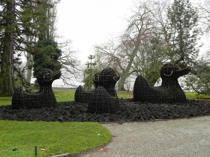 Те, кто хотя бы вскользь интересовался Майнау, наверняка знают, что его символами являются объёмные цветочные композиции в виде подсолнуха, павлина и утят. Зимой, конечно, птицы выглядят тщательно ощипанными.