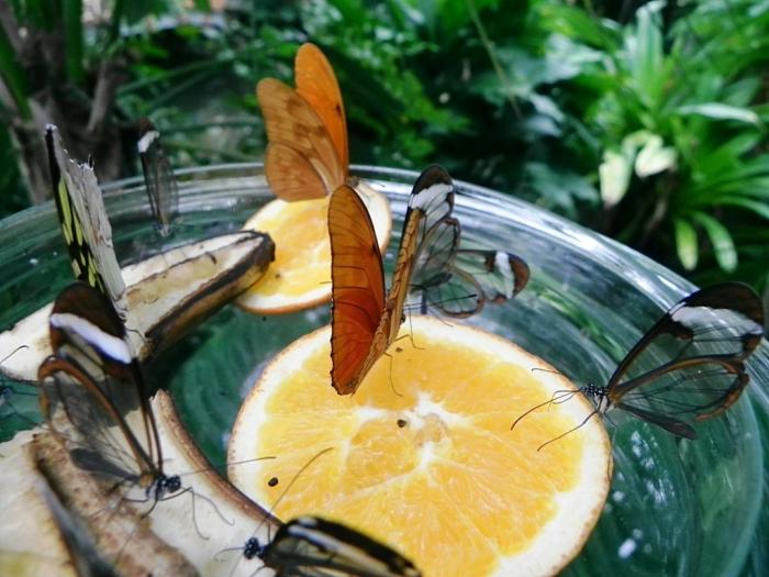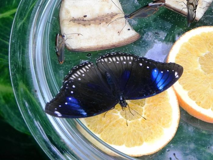 В этой ситуации спасают специальные кормушки с дольками апельсина, манго и бананами, куда бабочки слетаются «табунами», словно мухи…