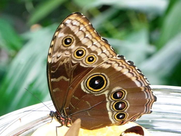 В павильоне постоянно обитает около 80-ти видов бабочек. 30 % из них самовоспроизводятся. Остальных еженедельно доставляют в виде куколок из племенных хозяйств со всего мира. Первым делом, сломя голову, мы бросились запечатлеть одну из самых больших в мире бабочек – Аттакус Атлас, которая терпеливо ждала, пока мы разберёмся с фотоаппаратом.