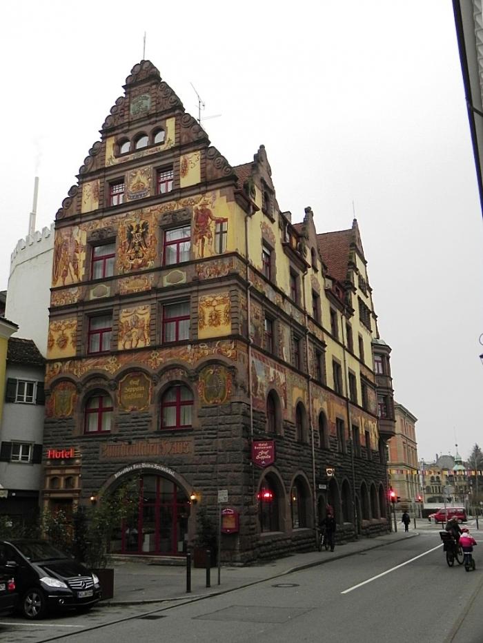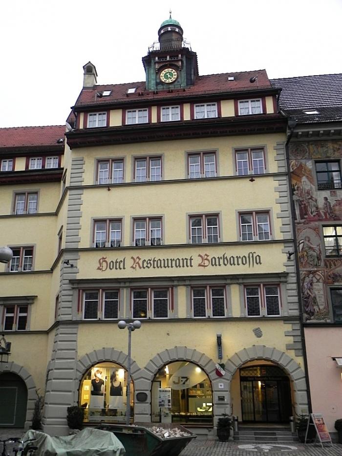Разумеется, что в Констанце сохранились аутентичные средневековые здания. И для того, чтобы их выделить, подсказки не нужны. Среди них выделяется «высотный» отель «Барбаросса» с «признаками» то ли ратуши, то ли пожарной каланчи.