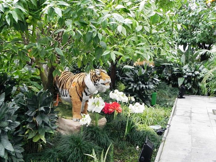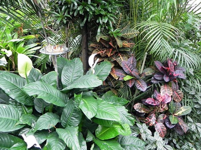 Но не одними только бабочками заполнены эти райские кущи. Наряду с пышной тропической зеленью и благоухающими посреди зимы растениями здесь есть и другие жители.