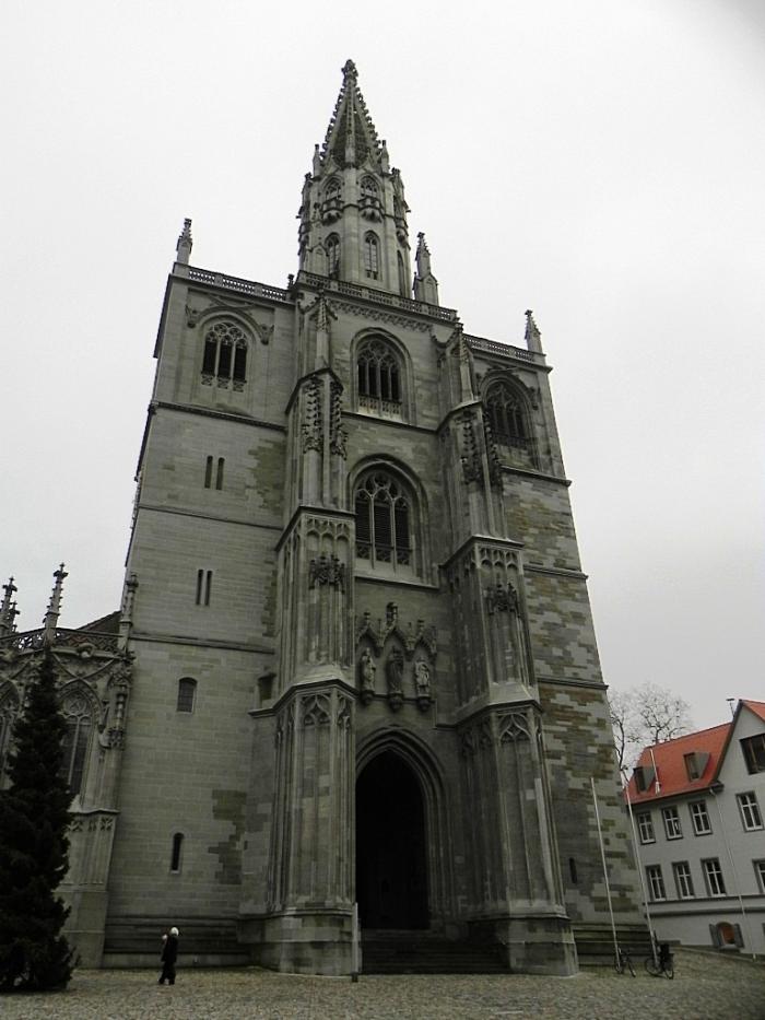 В Констанце существует довольно внушительный список исторически значимых зданий. Но нас их история, как правило, интересует лишь до тех пор, пока она коррелируется с получаемым эстетическим наслаждением. Фотографировать то мы их продолжали, но скорее автоматически. Притормаживали лишь изредка. В том числе, и у кафедрального собора Нашей дорогой госпожи, в котором заседало общее церковное собрание вселенского собора. Сооружению почти тысяча лет, поэтому, естественно, что после неоднократных перестроек мюнстер вобрал в себя все архитектурные стили. Необычность собора, на мой взгляд, состоит ещё и в том, что он предстаёт каким-то абсолютно плоским, будто состоит из одного лишь фасада.