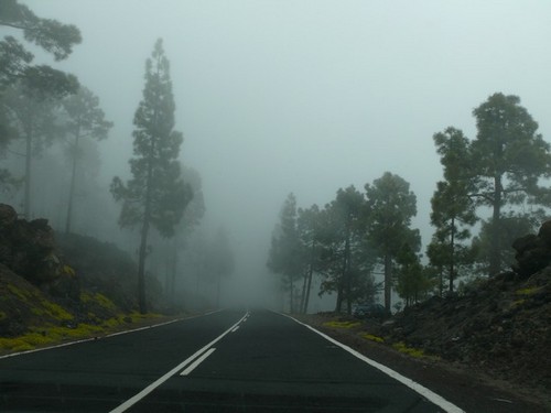 Тенерифцы любят эти свои Mirador – красивые виды – их отмечают специальными дорожными знаками с фотоаппаратом и делают специальные съезды для автотуристов. Мы уже выше облаков, скоро на белом основании останется только гора, поросшая соснами.