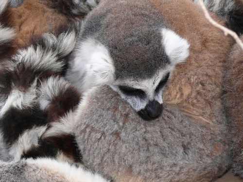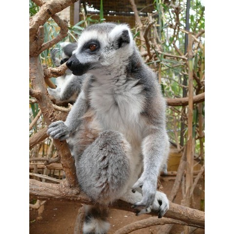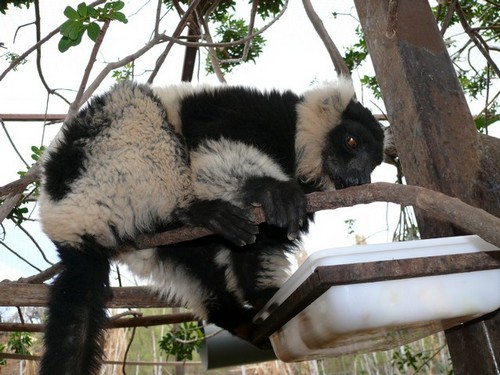 И вот оно началось – кормить лемуров действительно ЗДЕСЬ! Свесив свои черно-белые хвосты, они тянутся с веток к кульку. Потом тянуться надоедает и пушистики перебираются на более удобные позиции – можно выбрать лакомство самостоятельно.