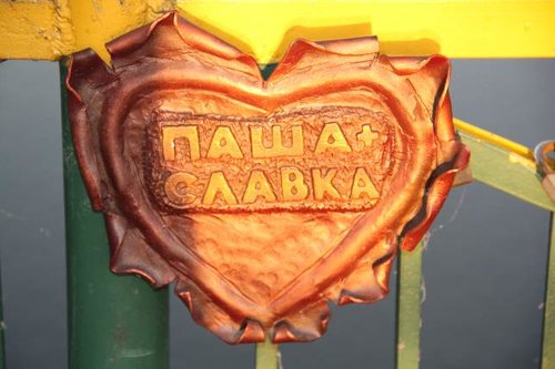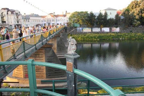 Тем более, что на своеобразные экспонаты тянут и замки которыми украшен мост. Я имею ввиду замки влюбленных, их сейчас цепляют почти на любой мост. Но в Ужгороде преобладают не магазинные образцы, а сделанные в ручную авторские экспонаты, многие из которых и замками назвать то сложно.