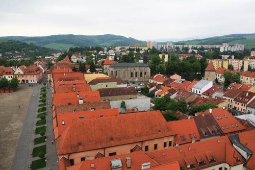 С башни отличный вид на город, но повторюсь, город крошечный. Ратушная площадь открыта и расстелена перед башней. Чуть сбоку от окончания площади просматриваются украинский храм Св.Петра и Павла и костел Евангелистов.