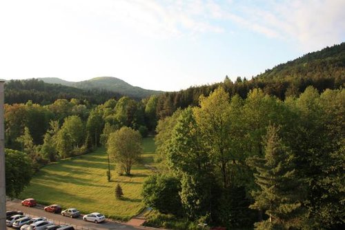 Ночевка, да впрочем и вся неделя проживания у нас в отеле *Ozon* в городке Бардейовские Купеле. Симпатичные места, и хороший вид с нашего балкона.