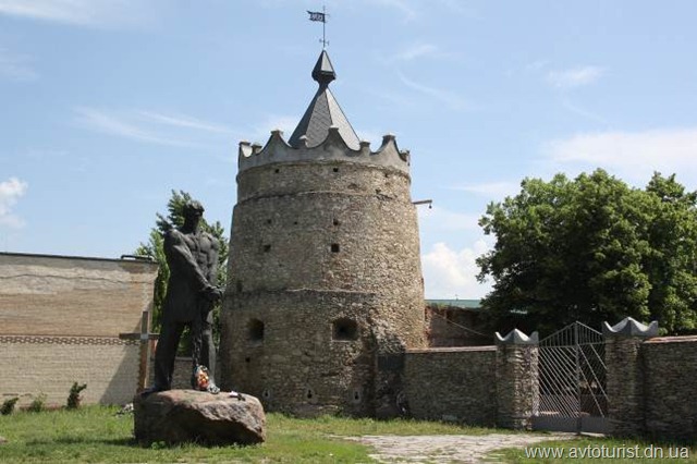 Здесь же стоит пятиметровый памятник *украинскому Робин Гуду*-Устиму Кармелюку. Летичев стал местом его последнего упокоения.