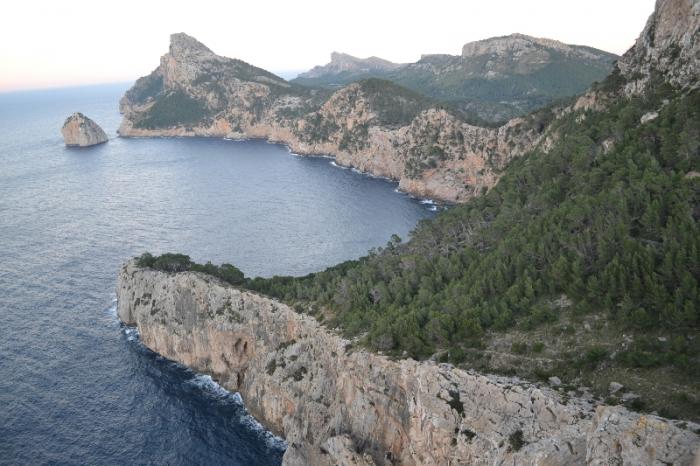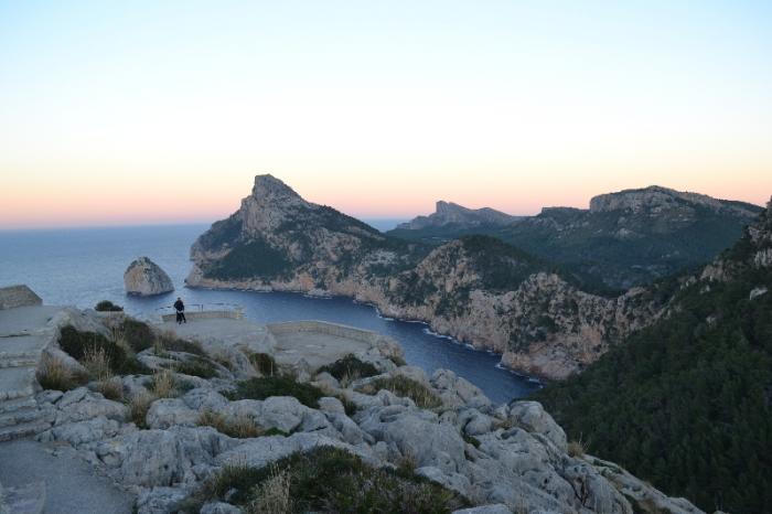 Последняя точка данного красивейшего маршрута по северо-западной части острова ведет нас на самую его северную часть – мыс Форментор. Мы, правда, до заката не успеваем доехать до него, но успеваем до смотровой, расположенной над городком порт-де-Польенса. Шикарный панорамный вид перед смотровой – на большую бухту Бахия-де-Польенса, с её городками (порт-дэ-Польнса, Алькудия и прочими более мелкими).