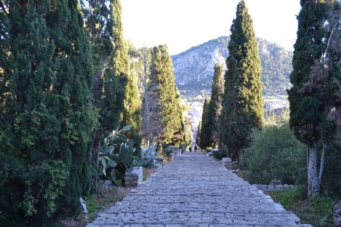 Если же все-таки продолжить путь далее на север, постепенно серпантин пойдет на спуск, трасса постепенно выравнится и вы доедете до городка Польенса. Он находится у подножья горы Сьерра-де-Трамунтана. В 13 веке над городом построили церквушку, вернее даже часовню Эль Кальвари и провели к ней по склону от центра городка ни много – ни мало 365 ступеней.