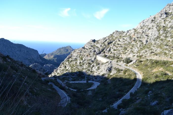 Если до этого серпантины к портам были сложными, но часто всю красоту дороги скрывали деревья и т.п., этот серпантин по праву можно назвать самым красивым на Майорке. Дорога бешено петляет вниз вдоль голых скал, уменьшаясь в некоторых местах в ширину до 3 метров, делая интересные кольца и неповторимые повороты. Кра-со-та!!!