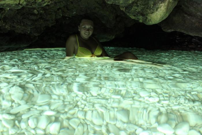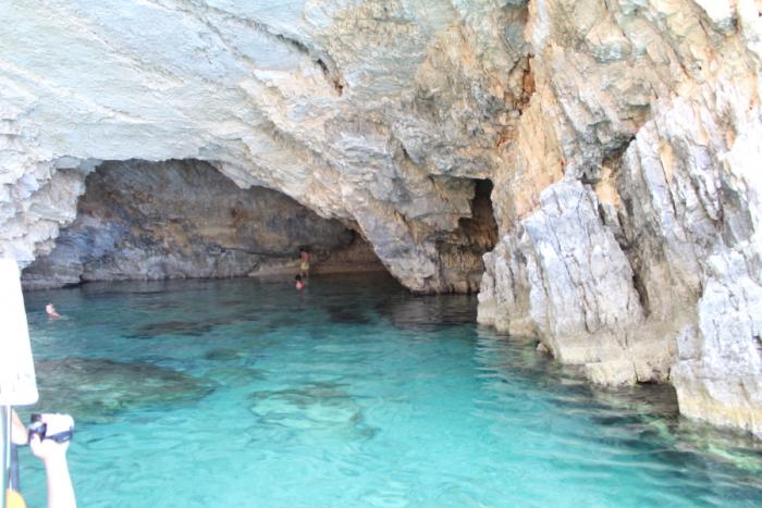 Дальше нас ждали пещеры Кери… Водитель нашей лодки завез нас во все пещеры, встречающиеся на пути. Чистота воды всё еще поражала нас, так как на протяжении всей нашей экскурсии мы видели дно. Остановившись около крупной пещеры, водитель дал нам 15 минут поплавать и изучить ее самим.