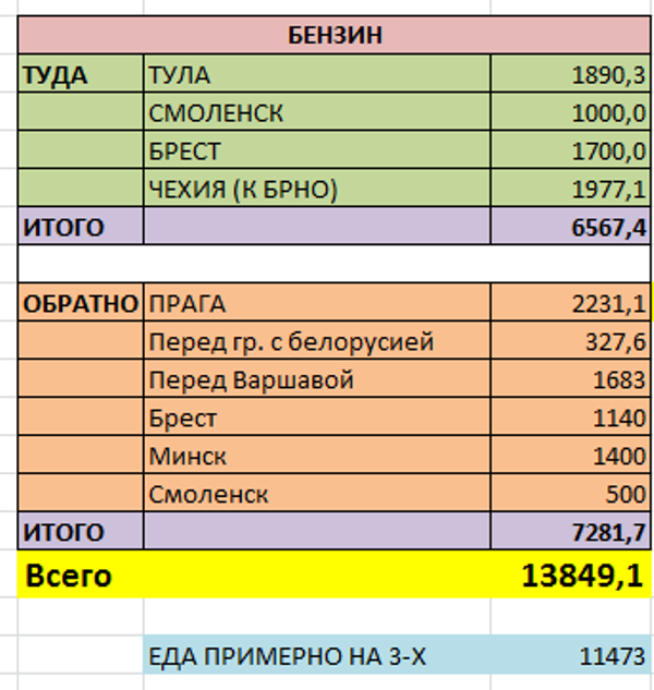 Километраж: туда:2170км, обратно:2100км.