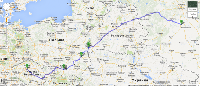 Маршрут обратно: Прага-Брно-Оломоуц-Острава-Гливице-Варшава-Брест-Минск-Смоленск-Вязьма-Калуга-Тула.