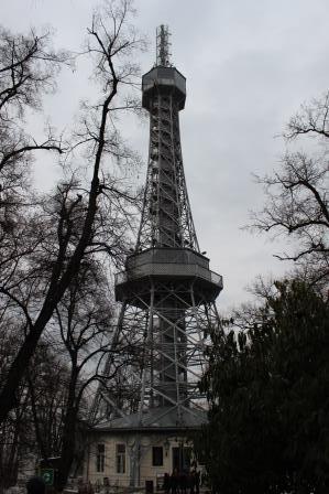 На холме стоит Петршинская башня, Эйфелева башня Праги, возведена в 1891 году, её высота составляет 80 метров.