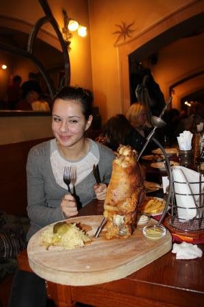 Ну а на ужин мы пошли в нашу любимую Pivnice Stupartska. Полюбили мы ее из-за вкусной еды, вкусного пива, недорогих цен и близости к дому. Практически в каждом ресторане Праги вы встретите в меню свиное колено и кнедлики. А так же Чехи любят горчицу и хрен.