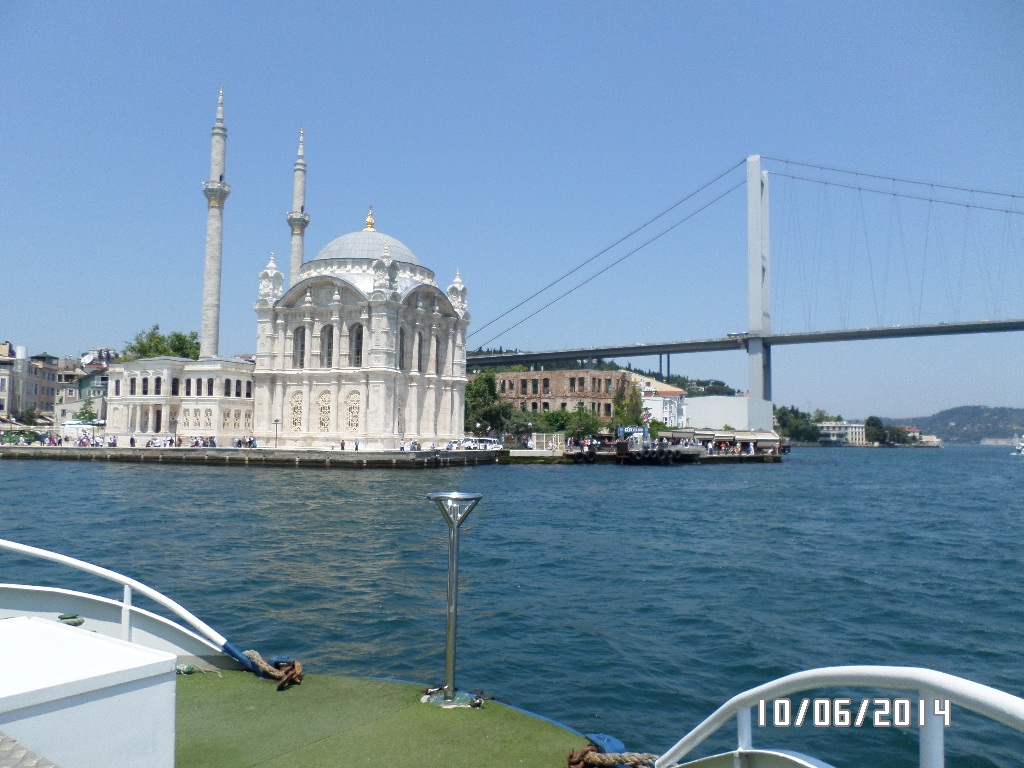 потом морская экскурсия по Босфору (30 лир/чел), которая очень понравилась. На прогулочном теплоходе осматриваем всемирно известные: Софиевский Собор, Topkapi Palace, Galata bridge, Dolmabahce Palace, мечеть Ortakoy. Проплываем под обоими Стамбульскими мостами.