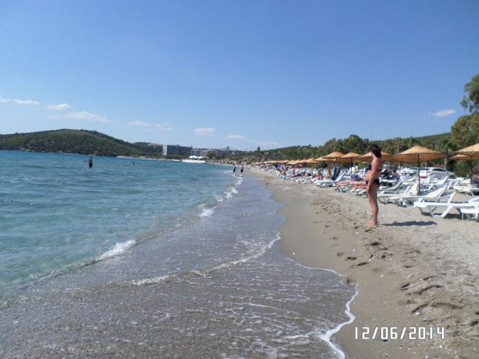 Где делаем остановку, чтобы сходить на пляж. Узкая полоса, до предела заставленного шезлонгами, песчаного пляжа и мутноватая вода закрытой бухты Мармариса немного подпортили наши ожидания.