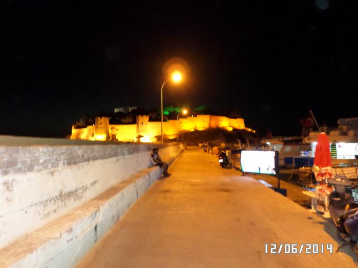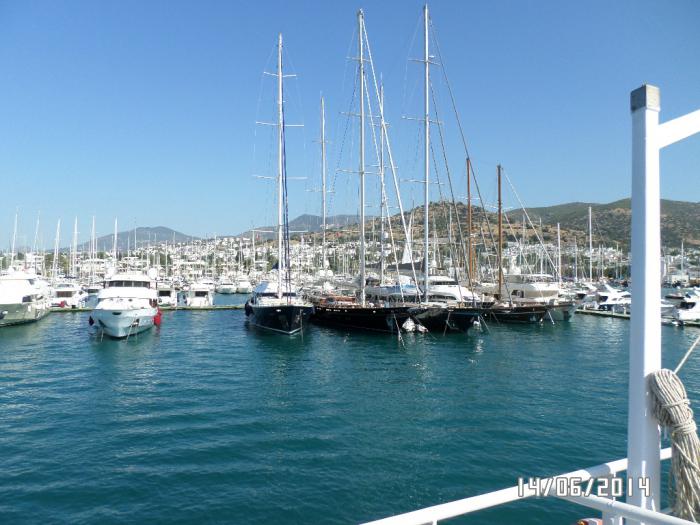 На въезде в Бодрум спускаемся по указателю паромной переправы. Выясняется, что от этого терминала паромы ходят на греческие острова Kos и Rodos. Паром на Datca отправляется от центральной набережной. Вдоль набережной сплошной стеной пришвартованы яхты, и паром нам найти не удаётся. Возвращаемся на тот же терминал, где нам снова подробно объясняют, как найти место отправления парома на Datca. Также нам помогают приобрести билеты на завтра на утро, чтобы мы не возвращались снова на набережную. Билеты высылают по e-mail и распечатывают прямо в кассе терминала на греческие острова. Стоимость переправы машина + 2 чел =104 лиры. Оказывается, переправа Bodrum-Datca только открылась и завтра 2й рейс в этом сезоне. Можно сказать, что нам повезло. Понимаем, что потеряли деньги за проплаченый отель в Oludeniz. Но с другой стороны появилась возможность прогуляться по ночному Бодруму. Время уже около 9 вечера, находим пансион на одну ночь за 60 лир (30$).