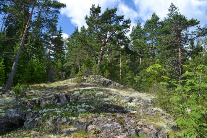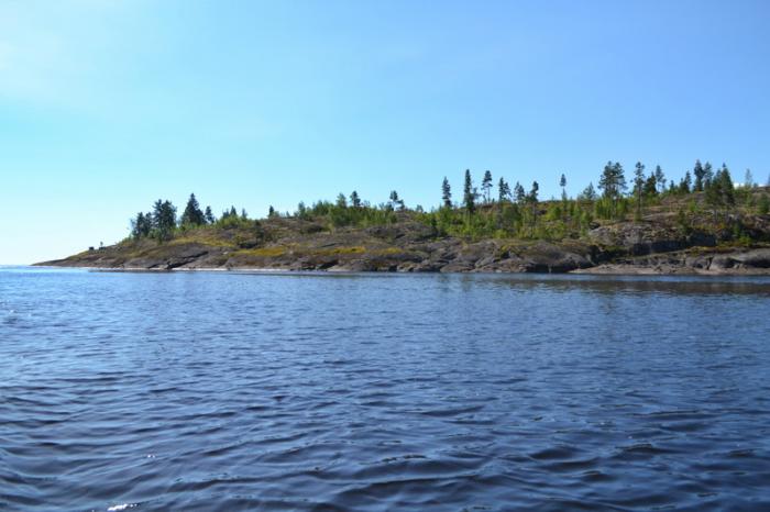 Раньше я никогда не плавал на моторной лодке даже пассажиром. Однако доходчивого инструктажа, проведенного ребятами в пункте проката, оказалось достаточно для того, чтобы уже через 15 минут я уверенно вел моторку, все дальше и дальше удаляясь от цивилизации. Целый час мы плыли по заливу вдоль абсолютно безлюдных берегов, поросших мхом и хвойным лесом и сползающих к бурой воде гладко отшлифованной каменной лавой. С другой стороны вдалеке проплывали бесчисленные островки с пронизывающими их протоками. Мы в царстве Ладожских шхер!