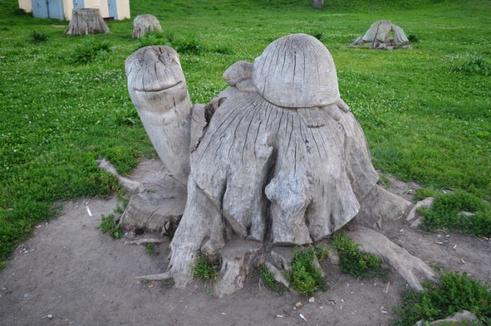 Планируя нашу поездку по Южной Карелии, мы хотели завершить ее, проведя пару дней на какой-нибудь спрятанной в лесной глуши турбазе. Увы, в приглянувшихся нам турбазах за месяц до поездки свободных мест уже не было или мнение их хозяев о цене сильно отличалось от нашего. В итоге мы забронировали деревянный коттедж в Лахденпохье, куда и направились, вдоволь насладившись зрелищем мраморного каньона. По пути затарились в «Дикси» Сортавалы шашлыками (чего, как оказалось, можно было не делать – в самой Лахденпохье имеются целых два сетевых магазина: «Пятерочка» и «Магнит»). Мне хотелось посмотреть в Сортавале экспозицию картин, выполненных резьбой по дереву, местного резчика Кронида Гоголева, но, понадеявшись на навигатор, я записал только адрес, а знания «Навитела» о Сортавале, как выяснилось, ограничивались только основными улицами. Язык, конечно, до Киева доведет, но блуждать по незнакомому городу не было ни сил, ни желания. В общем, не судьба, а жаль.
