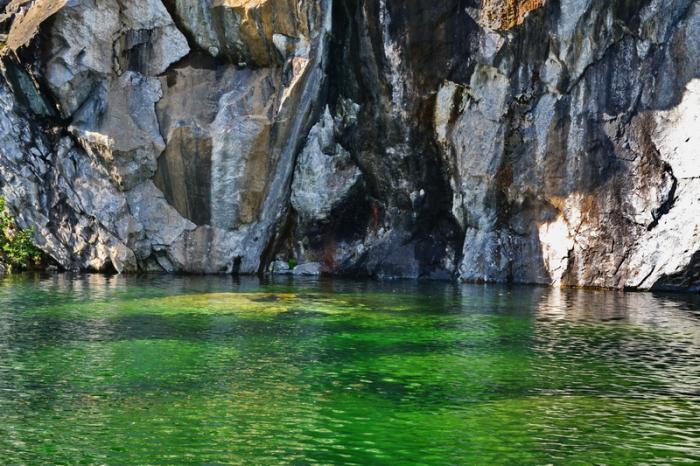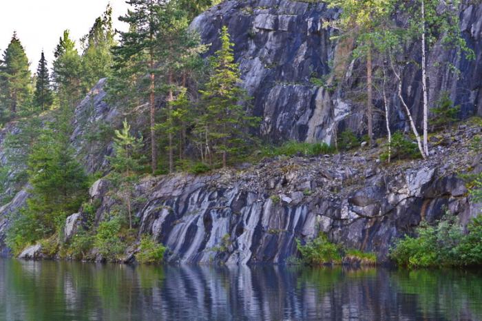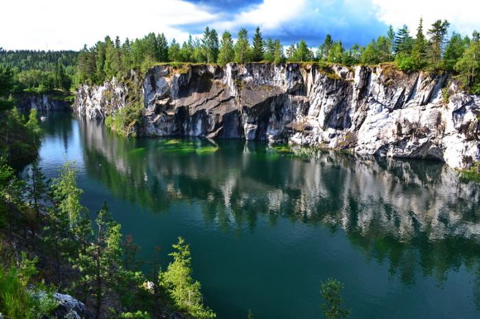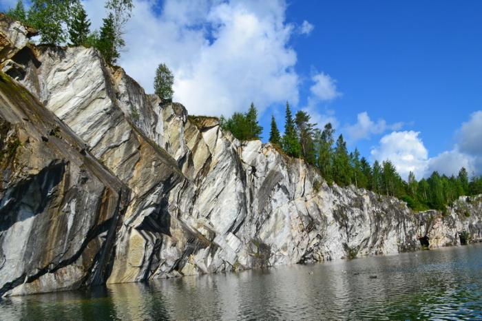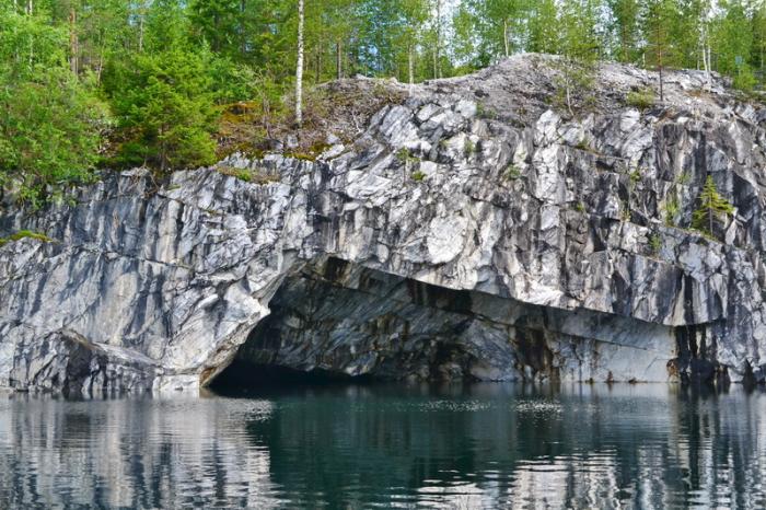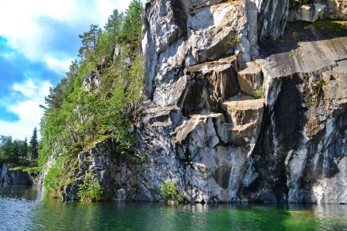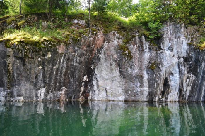 Рускеальский мраморный каньон — искусственного происхождения. Здесь на протяжении нескольких веков добывали мрамор, шедший на строительство зданий Петербурга, в частности, Исакиевского собора, и прочие нужды. Сейчас его котлован заполнен водой, а берега изрыты штольнями. На самом деле каньонов здесь несколько, но мега-звездой является этот, вызывающий восхищение с первого взгляда. Мы приехали сюда спозаранку, чему впоследствии были несказанно рады (работает поговорочка!!!). Первыми взяв напрокат лодочку, мы В ПОЛНОМ ОДИНОЧЕСТВЕ плавали по изумрудной воде, восхищаясь видами суровых мраморных берегов. Описывать каньон не буду – фотографии говорят сами за себя. Потрясающе красивое место!
