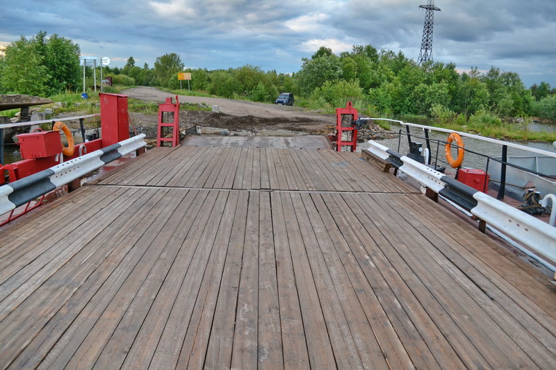 Вскоре начинается погрузка на паром, капитан пропускает огромную баржу, степенно дефилирующую в сторону Онежского озера, и мы отчаливаем. За те 10-15 минут, что длится переправа, погода успевает испортиться до неузнаваемости: налетел неприятный холодный ветер, солнце заволокло чернильными тучами, и они тут же разревелись. Снова прощаемся с финном (теперь уже насовсем), усаживаемся в машину, съезжаем с парома и поспешно устремляемся вперед, надеясь оторваться от дождя.