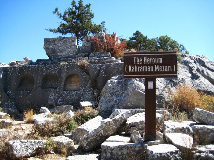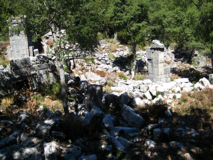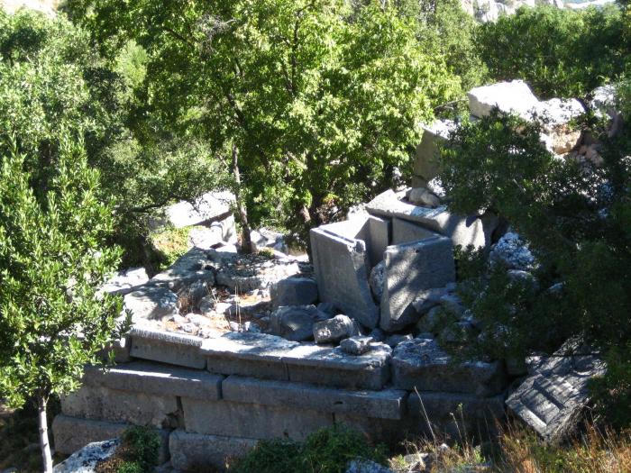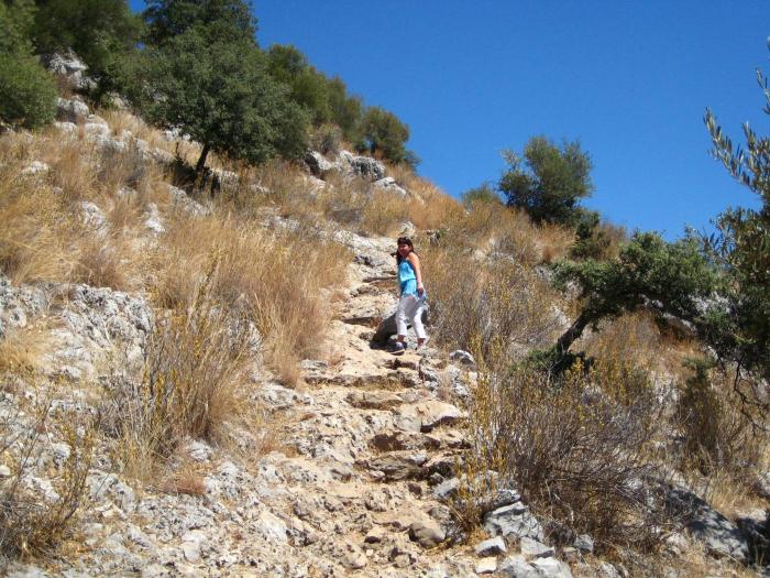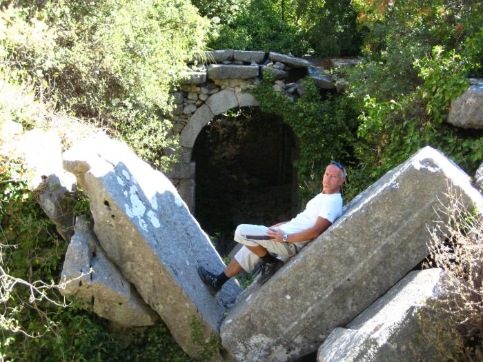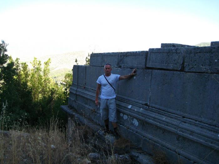 Постепенно мы приближаемся к главному объекту, который мне сильно хотелось увидеть- гробнице Алкета, полководца самого Александра Македонского. Но, здесь Оксана запротестовала, так как нужно было опять подниматься еще выше в гору, а жара перевалила за 40 градусов. Решили так: Оксана идет обратно по этой же дороге, а я ищу гробницу Алкета и возвращаюсь к машине по другой, более трудной дороге.