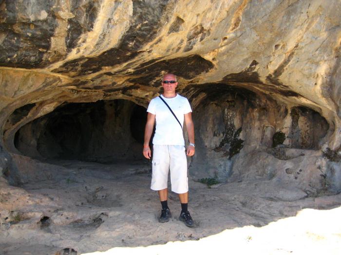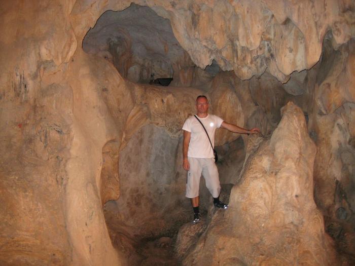 И тут с нами случилось непредвиденное! Когда мы уже спустились в самый низ пещеры, то вдруг вырубился свет! Весело? Не то слово, темень полнейшая! Включаю сотовый, толку почти ноль. Кое-как находим ступеньки наверх и бочком, бочком… Вообщем выбрались. И заругаться на на кого, никого нет. Ну, да ладно, даже прикольно.