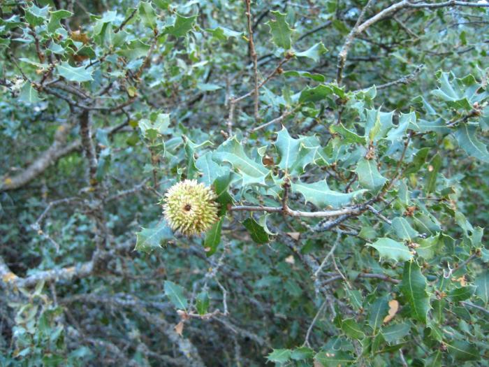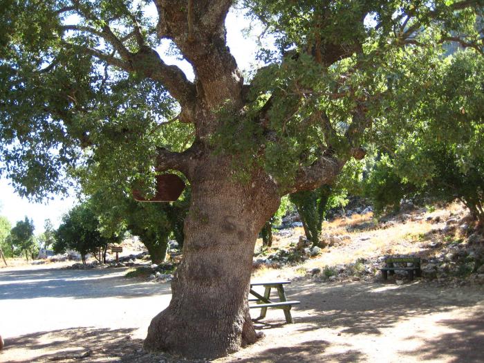 Вокруг тропинки растут дубы, правда не такие как у нас:
