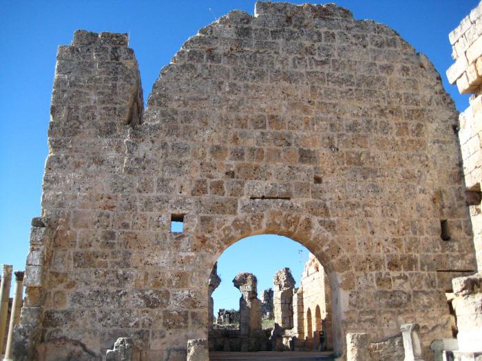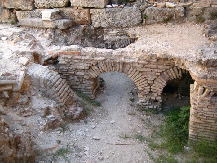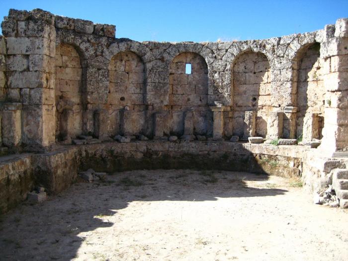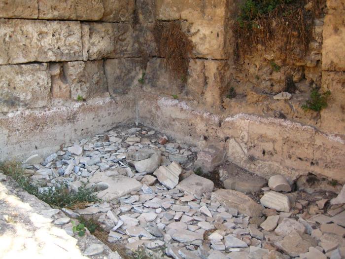 Между римскими и эллинистическими воротами видны остатки Нимфея Септимия Севера, императора родом из знаменитой Лептис-Магны (нимфей-это святилище нимф в виде фонтана):