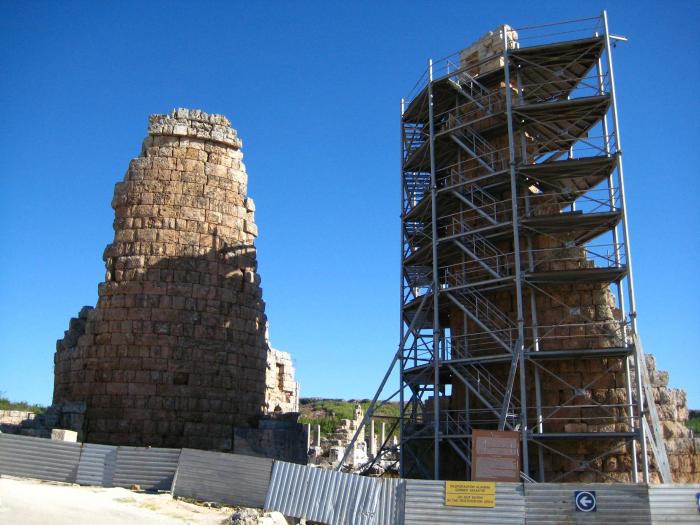 Ее же средствами возведена за эллинистическими воротами монументальная трехпролетная арка, по предположениям археологов – подобная Воротам Адриана в Анталье (уж их то, думаю, видели многие). Сейчас здесь лишь остатки пилонов:
