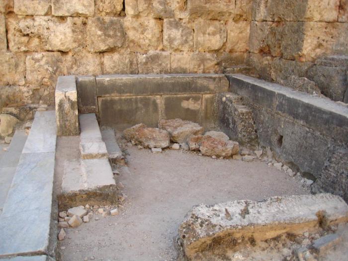 За южным портиком палестры располагались аподитерий (раздевалка) и фригидарий (холодное отделение)