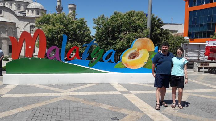 Малатья, это наша большая остановка на пути к морю. Город с населением более 600 000 человек находится среди гор. Это официальная «абрикосовая» столица не только Турции, но и мира (как говорят местные). Именно Малатья экспортирует по всему миру курагу и прочие продукты из абрикосов. Тут живут наши хорошие друзья Чингиз и Гульнара, с которыми мы не виделись уже 7 лет. Они и мы очень ждали эту встречу. Чтобы доехать до Малатьи из Батуми нужно преодолеть 10 горных перевалов с высотой от 1800 до 2100 метров на расстоянии 400 км (Трабзон – Малатья) Путь пролегает через Трабзон, Гюмюшхане, Илич, Кемалье и Арапгир. В прошлый раз, 7 лет назад мы ехали через Тунджели и Элязыг. Но сегодня при обостренной напряженности турок и курдов, в Тунджели лучше не соваться так как там постоянно идет антитеррористические операции. Почти весь путь от Гюмюшхане до Малатьи идет вдоль реки Фират (Евфрат) известной как колыбель человеческой цивилизации. В районе Кемалье эта река превращается в красивейшее озеро. Тут же был самый сложный участок пути – серпантин между Кемалье и Арапгиром. Опасность данного участка в том, что дорога поднимается вверх с уклоном 10° имеет много поворотов на 180° и при ширине дорожного полотна 3-4 метра не имеет ограждения. К счастью, за 10 км этого серпантина нам на встречу не ехало ни одной машины.