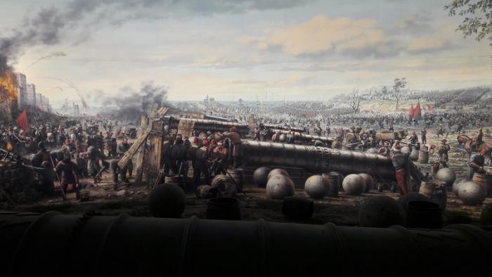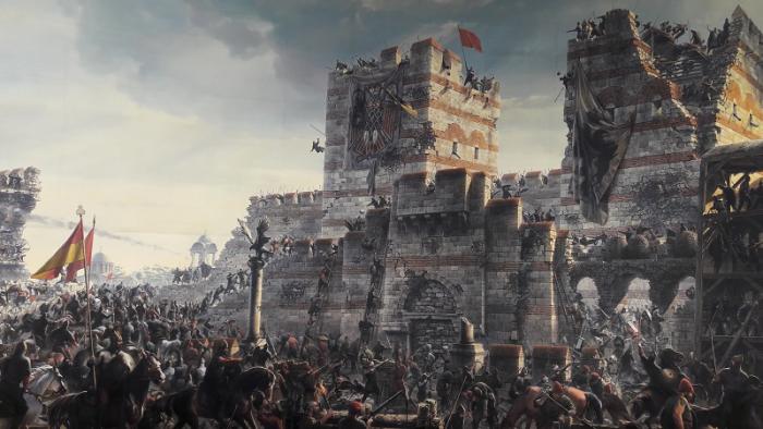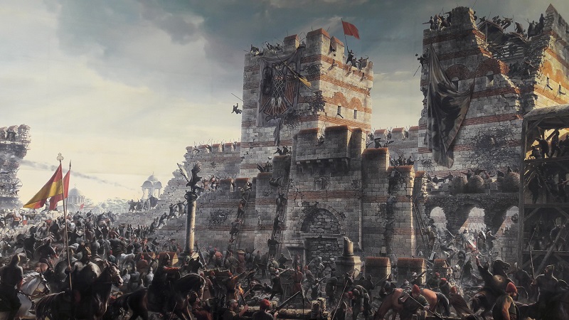 На картине изображены последние часы Византийской империи. Так, всего за 1 день Константинополь из столицы Византии превратился в столицу государства Османов.