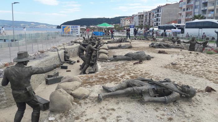 Чанаккале это город боевой славы Турции, здесь и на Галипольском полуострове в 1915 и 1916 годах в течение 11 месяцев проходила Дарданелльская операция или Битва при Чанаккале. Британия и страны Антанты стремились завладеть Константинополем и вывести Османскую империю из Первой Мировой Войны. Итог этой операции для Британской империи был катастрофическим 120 000 человек убиты, ранены и пропали без вести, Австралия, Новая Зеландия и Франция потеряли вместе около 60 тысяч солдат. Османская империя – более 200 000 солдат убито, ранено и пропали без вести. В Килитбахире установлена мемориальная композиция, показывающая как шли сражения буквально за каждый сантиметр земли. Окопы противников находились на расстоянии 8 метров друг от друга.