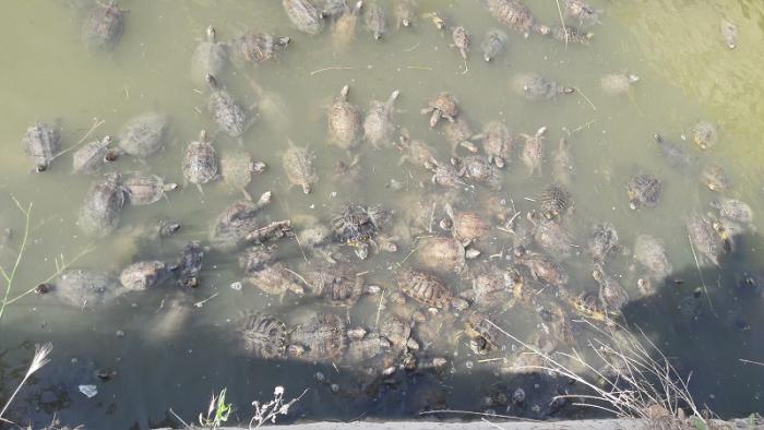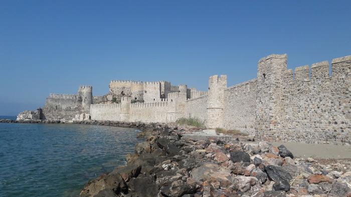 Анамур это городок с населением в 65 000 человек, из которых половина выращивает бананы, а другая половина держит отели и всячески поддерживает отельную инфраструктуру. Если Малатья славится абрикосами, Ризе – чаем и фундуком, то Анамур – бананами. Такое впечатление, что они здесь повсюду. Кстати, зрелище не очень эстетичное, так как все бананы выращиваются в непрозрачных теплицах. Внутри теплицы, конечно, как будто в джунглях, а снаружи – непрозрачная белая полиэтиленовая пленка. На каждом углу продаются бананы цена за желтые 7 лир, а зеленые 6 лир за кг. Кстати, достаточно вкусные бананы. Нам понравились маленькие, у них по моему, вкус и запах более насыщенные. Повсюду в городе фуры, загружающиеся бананами. Также в городе есть одна достопримечательность – Кремость Мамуре (Mamure Kalesi). К сожалению, она сейчас закрыта на ремонт, обещали, что откроется через неделю. Но и снаружи она производит величественное впечатление. Крепость находится на самом берегу моря, и там как раз можно купаться. Есть еще одна интересная вещь – пляж возле крепости, это место кладки яиц морских черепах. Как раз скоро маленькие черепашки должны вылезать из песка. Возле крепости небольшой ров, заполненный зеленой водой с сотнями черепах. Их можно покормить банановыми шкурками.