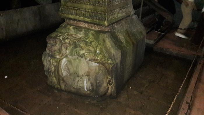 Еребатан или как нам привычнее – Базилика Цистерна это огромный подземный резервуар для воды прямоугольной формы с 12 рядами колонн по 28 штук в ряду и расстоянием между ними почти по 5 метров. Это также очень древнее сооружение, начатое при Константине Великом и завершенное при Юстиниане. Кстати, при нашем визите воды не было, водохранилище было осушено, возможно для уборки, а может от сильной жары. Обычно там около метра воды.