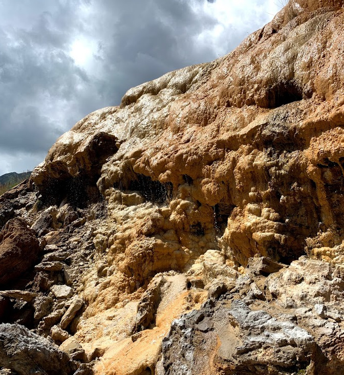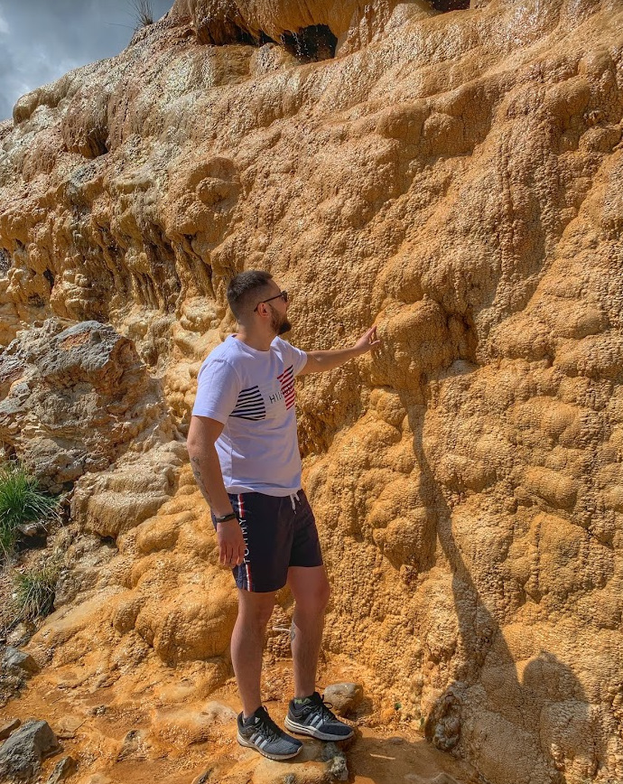 По дороге к крепости Ананури наткнулись на очень интересное место, как я его назвал «Плачущая скала», на гугл-картах называется Mineral spring. Очень удивился, что при составлении плана поездки нигде не наткнулся на описание этого удивительного места.